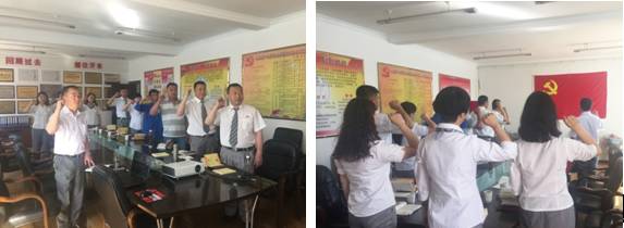 2016年6月30日,青海物產(chǎn)汽貿(mào)公司黨支部組織全體黨員慶"七一"上黨課。黨課開始之前,全體黨員面向黨旗重溫了《入黨誓詞》。"我志愿加入中國共產(chǎn)黨,擁護(hù)黨的綱領(lǐng),遵守黨的章程,履行黨員義務(wù),執(zhí)行黨的決定,嚴(yán)守黨的紀(jì)律,保守黨的秘密,對(duì)黨忠誠,積極工作,為共產(chǎn)主義奮斗終身,隨時(shí)準(zhǔn)備為黨和人民犧牲一切!永不叛黨"。