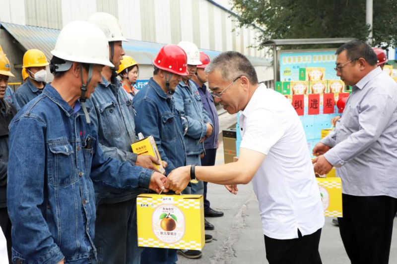 夏日送清涼,點滴沁人心。8月14日,青海省總工會紀檢監(jiān)察組組長祁維正,省總工會二級巡視員張文輝等一行3人蒞臨青海物產(chǎn)工業(yè)投資有限公司開展“夏送清涼”慰問活動,為夏日高溫下的一線職工送去組織關(guān)懷。集團副總經(jīng)理、工會主席張允忠等相關(guān)人員陪同。