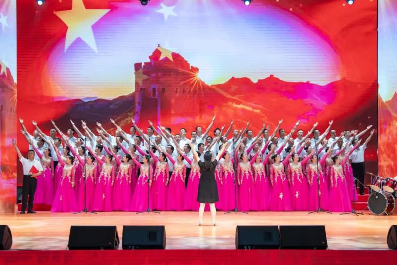 歷經(jīng)2個多月的精心籌備與刻苦訓(xùn)練,舞臺上的他們?nèi)橥度?、共情共鳴,用優(yōu)美嘹亮的歌聲唱響對祖國的贊美與熱愛,訴說那段波瀾壯闊的歷史。一首《領(lǐng)航》抒發(fā)了“感黨恩,聽黨話,跟黨走”熾熱的愛黨愛國情懷和奮進(jìn)新征程的豪情壯志?!洞笾袊凡粌H唱出了對祖國的熱愛,也唱出了物產(chǎn)人“一家人、一條心、一起干”的團(tuán)結(jié)精神,展現(xiàn)了新時代國有企業(yè)職工的昂揚(yáng)精神。