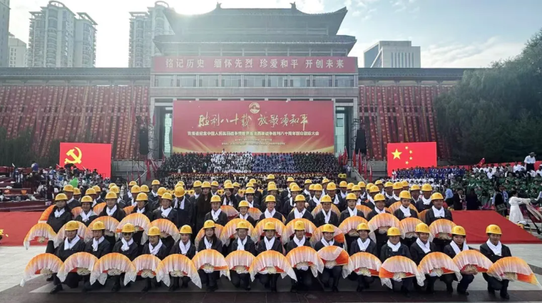 9月5日上午,勝利八十載 放歌頌和平——青海省紀(jì)念中國(guó)人民抗日戰(zhàn)爭(zhēng)暨世界反法西斯戰(zhàn)爭(zhēng)勝利八十周年群眾歌詠大會(huì)在新寧廣場(chǎng)隆重舉行。由省物產(chǎn)集團(tuán)80名職工組成的合唱方陣代表全省企業(yè)參加演出活動(dòng)。集團(tuán)黨委書(shū)記、董事長(zhǎng)劉玲,集團(tuán)黨委專(zhuān)職副書(shū)記、工會(huì)主席魏廷強(qiáng)參加紀(jì)念大會(huì)。