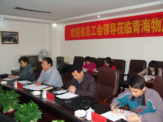 2012年12月13日下午,省總工會(huì)第六考核組組長(zhǎng)、省總副巡視員兼法律保障部部長(zhǎng)李忠云、考核組成員、省總機(jī)關(guān)黨委專(zhuān)職副書(shū)記呂華、考核組成員、省總組織部副調(diào)研員姬紅捷、考核組成員、省總經(jīng)濟(jì)部魏紅巖一行蒞臨青海物產(chǎn)集團(tuán),對(duì)物產(chǎn)工會(huì)2012年度工作開(kāi)展情況進(jìn)行考核。